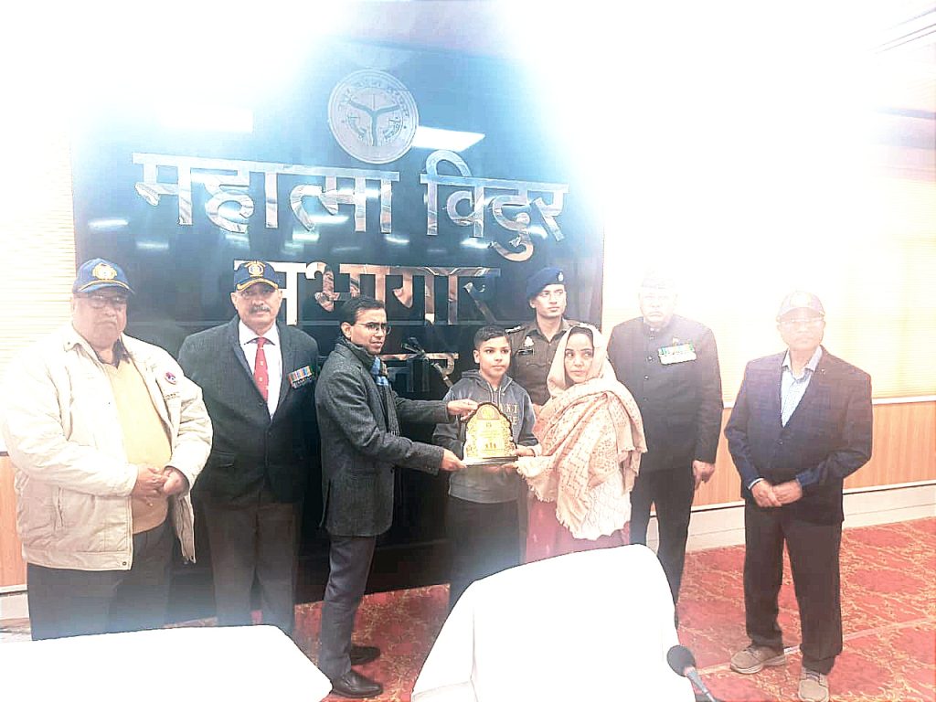 BIJNOR.  DM अंकित कुमार अग्रवाल की अध्यक्षता में आज कलेक्ट्रेट स्थित महात्मा विदुर सभागार में वेटरन्स डे का आयोजन किया गया। इस खास अवसर पर वीर नारियों, गैलेन्ट्री अवार्ड विजेताओं और बैटल कैजुअल्टी सैनिकों को सम्मानित किया गया। कार्यक्रम की शुरुआत जिला सैनिक कल्याण अधिकारी कैप्टन अनिल कुमार गुप्ता ने की।