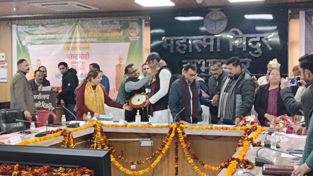 बिजनौर। प्रधानमंत्री नरेंद्र मोदी और मुख्यमंत्री योगी आदित्यनाथ की महत्वाकांक्षी स्वामित्व योजना के तहत आज बिजनौर में आयोजित एक विशेष कार्यक्रम में 35737 घरौनी प्रमाण पत्र लाभार्थियों को वितरित किए गए। इस कार्यक्रम का आयोजन कलेक्ट्रेट स्थित महात्मा विदुर सभागार में किया गया, जिसमें मुख्य अतिथि के रूप में राज्य मंत्री जल शक्ति विभाग, श्री दिनेश खटीक ने शिरकत की।