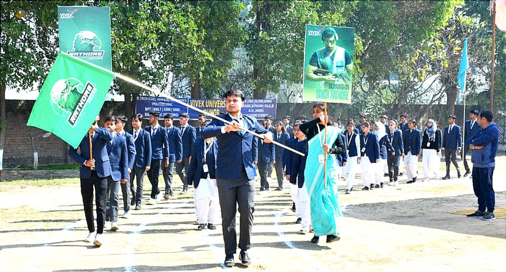 BIJNOR. बिजनौर स्थित विवेक विश्वविद्यालय में चार दिवसीय खेलकूद प्रतियोगिता की शुरुआत अत्यंत उत्साह और जोश के साथ हुई। इस प्रतियोगिता में छात्रों को छह हाउस—सिंधु हाउस, भाकर हाउस, मैरीकोम हाउस, राठौर हाउस, बिंद्रा हाउस और चोपड़ा हाउस—में विभाजित किया गया। इन हाउसों के नाम प्रतिष्ठित भारतीय ओलंपिक पदक विजेताओं के सम्मान में रखे गए, जिससे प्रतियोगिता को खेल भावना के साथ प्रेरणादायक आयाम भी मिला।