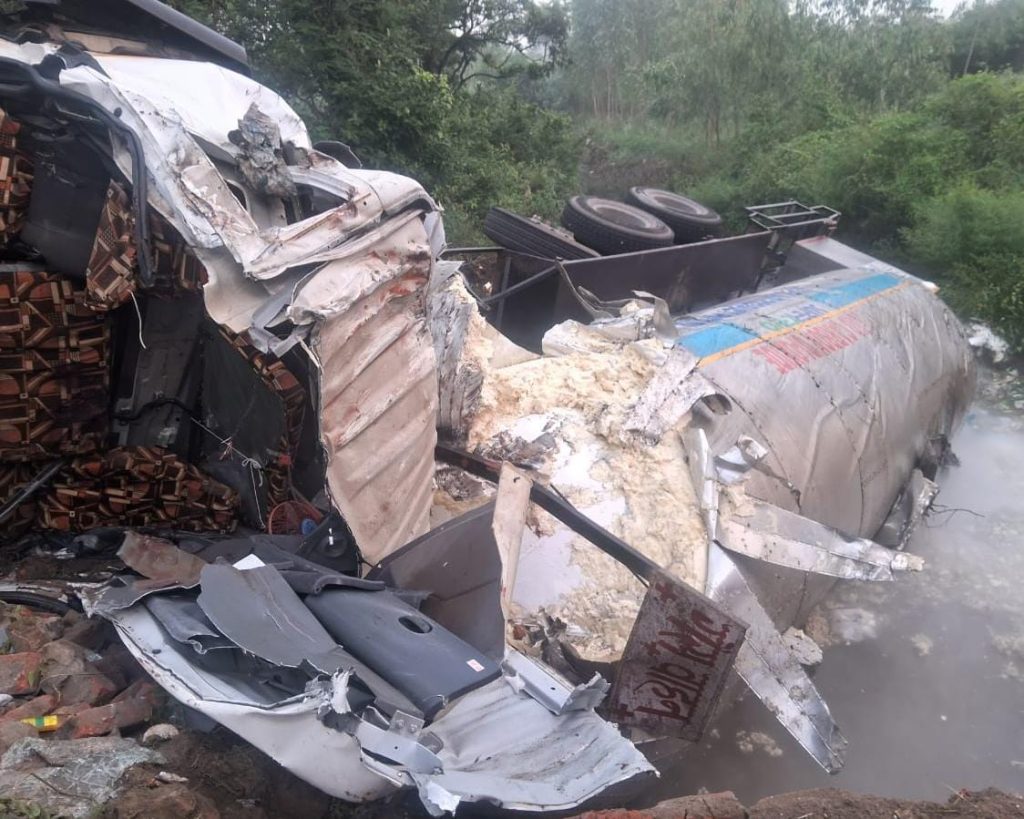 टक्कर इतनी जबरदस्त थी कि पुलिया के पत्थर उखड़ गए और टैंकर का अगला हिस्सा पूरी तरह क्षतिग्रस्त हो गया।