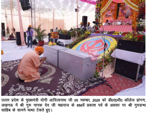 डीएवी कॉलेज, लखनऊ में आयोजित कार्यक्रम में मुख्यमंत्री योगी आदित्यनाथ हुए शामिल — बोले, गुरु नानक देव की शिक्षाओं पर ही खड़ी है भारत की सामाजिक व्यवस्था
