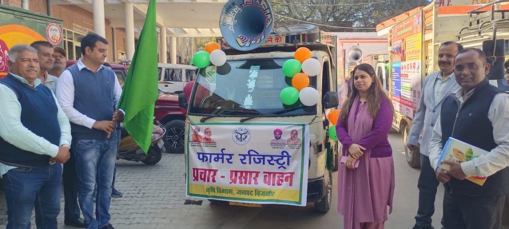 बिजनौर में 11 प्रचार वाहन रवाना, दूर-दराज तक किसानों को मिलेगा योजनाओं का फायदाफार्मर रजिस्ट्री, पराली प्रबंधन, सोलर पंप व रबी सीजन तकनीक पर फोकस – जिला प्रशासन ने शुरू किया विशेष जागरूकता अभियान
