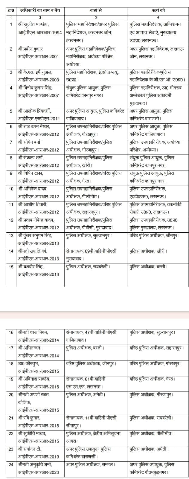• प्रवीण कुमार (2001 बैच) को अयोध्या से हटाकर लखनऊ जोन का अपर पुलिस महानिदेशक नियुक्त किया गया।