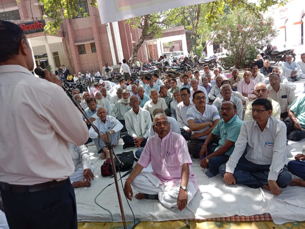 बिजनौर में पेंशनर्स का बड़ा प्रदर्शन: 8वें वेतन आयोग में शामिल करने और पुरानी पेंशन बहाली की मांग तेज