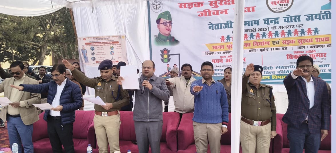 नेता सुभाष चंद्र बोस की जयंती पर मानव श्रृंखला के जरिए यातायात नियमों का दिया गया संदेश बलरामपुर : नेता सुभाष चंद्र बोस की जयंती
