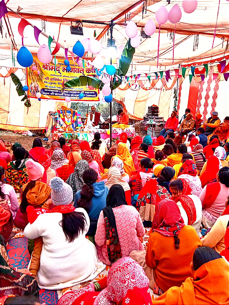 धामपुर में सप्त दिवसीय श्रीमद्भागवत कथा के पश्चात विशाल भंडारे का आयोजन