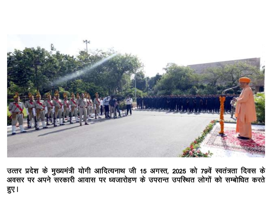 79वें स्वतंत्रता दिवस के अवसर पर अधिष्ठान भवन के स्मारकों पर मुख्यमंत्री योगी आदित्यनाथ का अभिनंदन किया गया