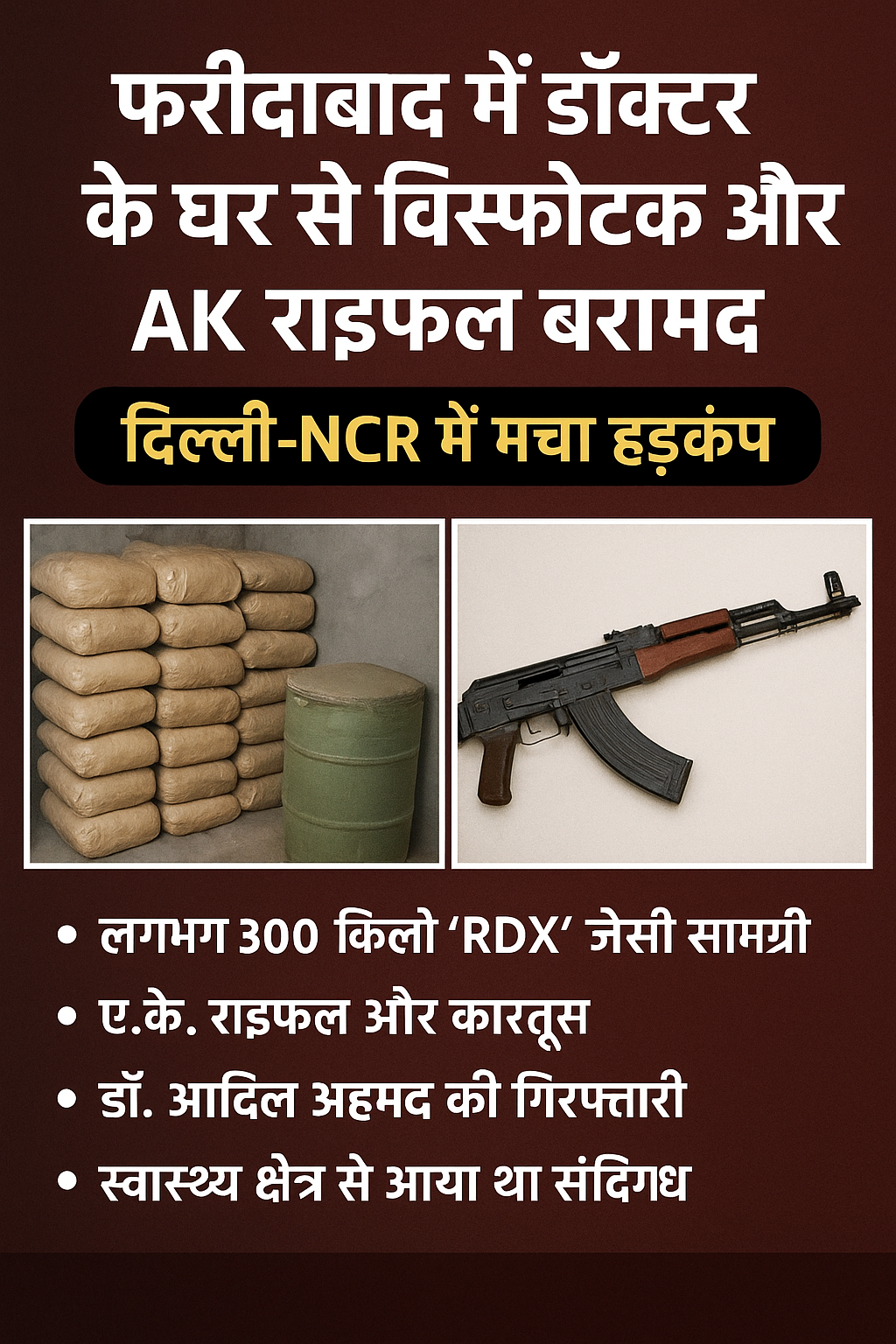 फरीदाबाद में डॉक्टर के घर से विस्फोटकों का जखीरा — 300 किलो “RDX” जैसी सामग्री, AK राइफल और कारतूस बरामद, दिल्ली-NCR में मचा हड़कंप! ‘व्हाइट